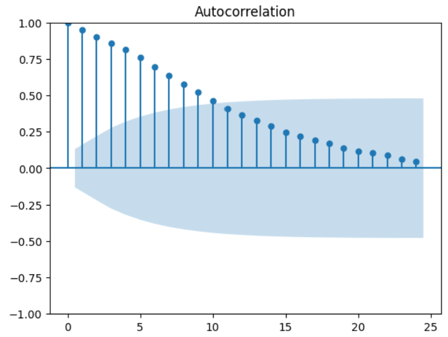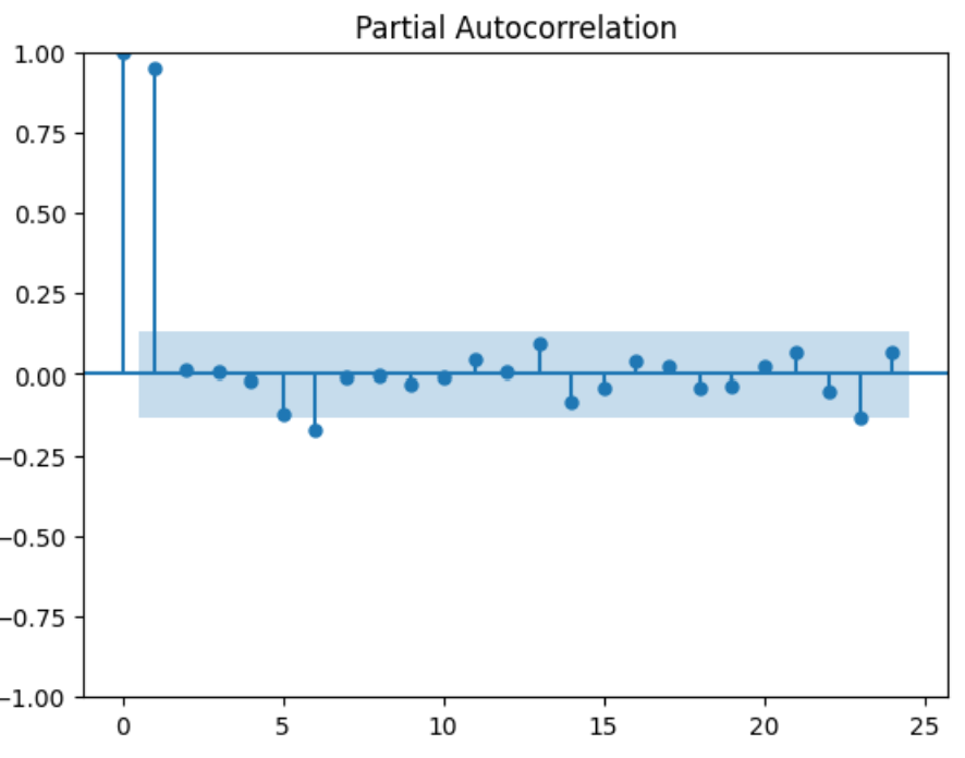 In addition, we check to ensure data is stationary using Augmented Dickey-Fuller (ADF) test for the null hypothesis that there is a unit root (non-stationary). Given p-value < 5% significance level, we can reject the null hypothesis, so the ADF test suggests that our time series is likely to be stationary and we will not need to utilize differencing on the data.